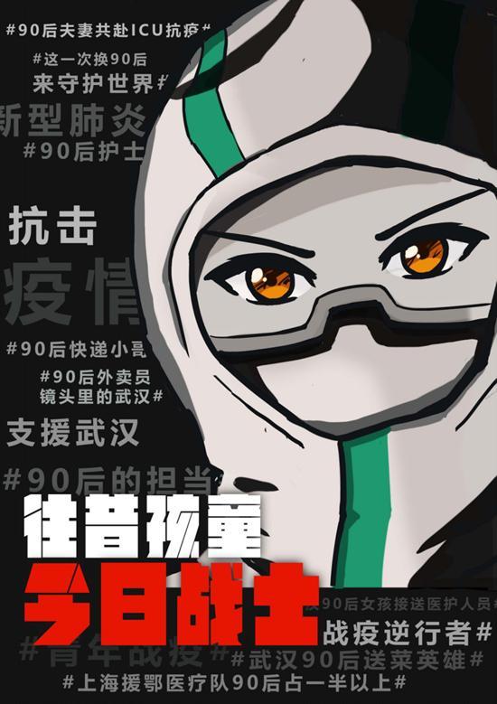 1997年出生的大四學生翁思佳看到許多年齡相當的護士奔赴前線,很有感觸,創作了作品《今日90后》,翁思佳說:“2003年非典時我們還很小,完全是被保護的孩子,十七年過去了,我們也可以去保護別人,希望通過這個作品表達年輕人對社會、對人民的責任感,也激勵自己去做更多貢獻。”