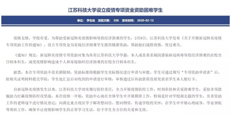 江蘇科技大學(xué)發(fā)布通知,設(shè)立專項資金為家庭經(jīng)濟困難學(xué)生提供精準(zhǔn)資助。