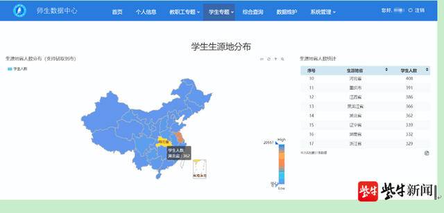 通過大數據技術,學校進一步加強疫情和開學形勢研判,描繪了全校2萬余名師生的基本數據情況,科學制定了下一步防疫措施。