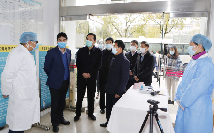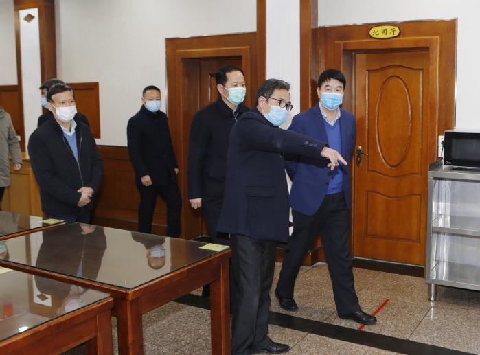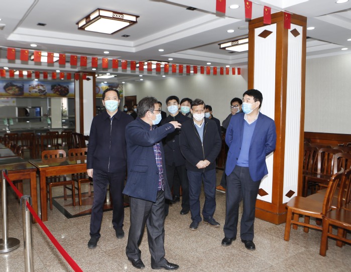 孫曉南部長一行先后來到學校醫(yī)學隔離觀察點、校醫(yī)院、教職工餐廳、留學生宿舍等場所,察看隔離觀察點準備、門診預診分診制度、疫情防控物資儲備等情況,了解值班教職工就餐形式,留學生宿舍管理措施,并現(xiàn)場聽取了學校相關職能部門負責人對疫情防控工作的匯報,隨后在綜合樓六樓會議室開展座談。