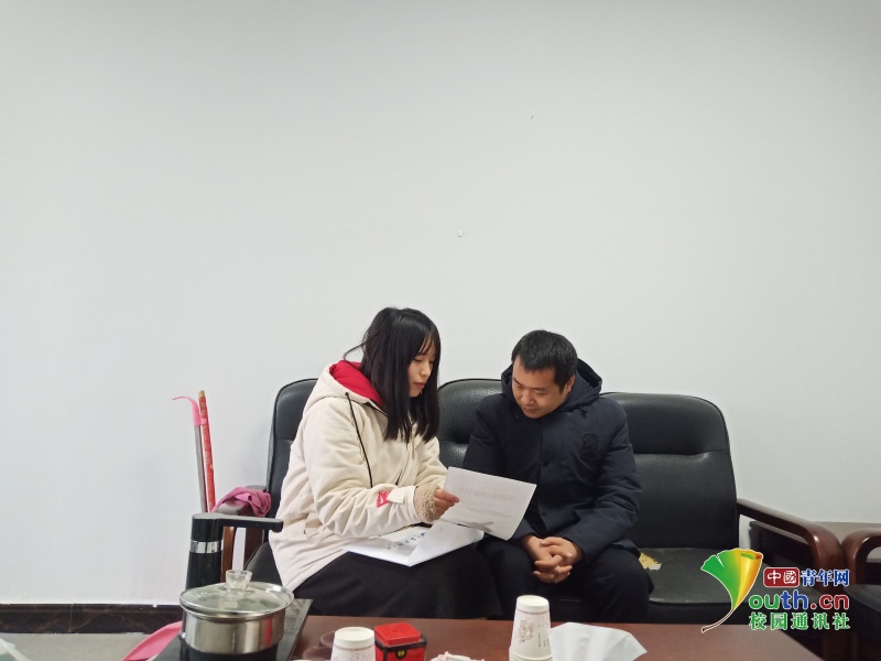 團(tuán)隊(duì)成員采訪平輿縣藍(lán)天農(nóng)業(yè)開發(fā)有限公司文職人員(通訊員 張俊樂攝)
