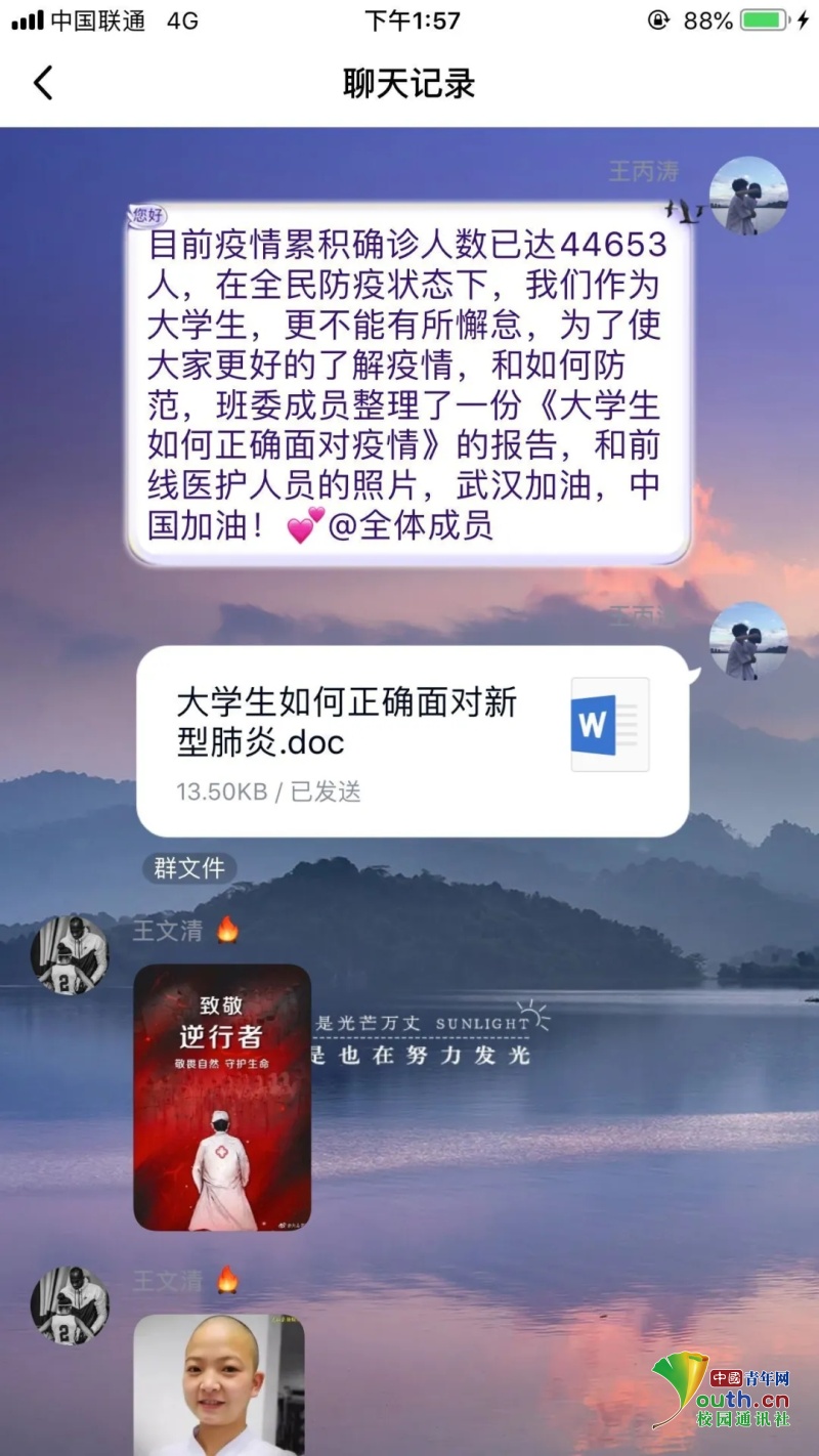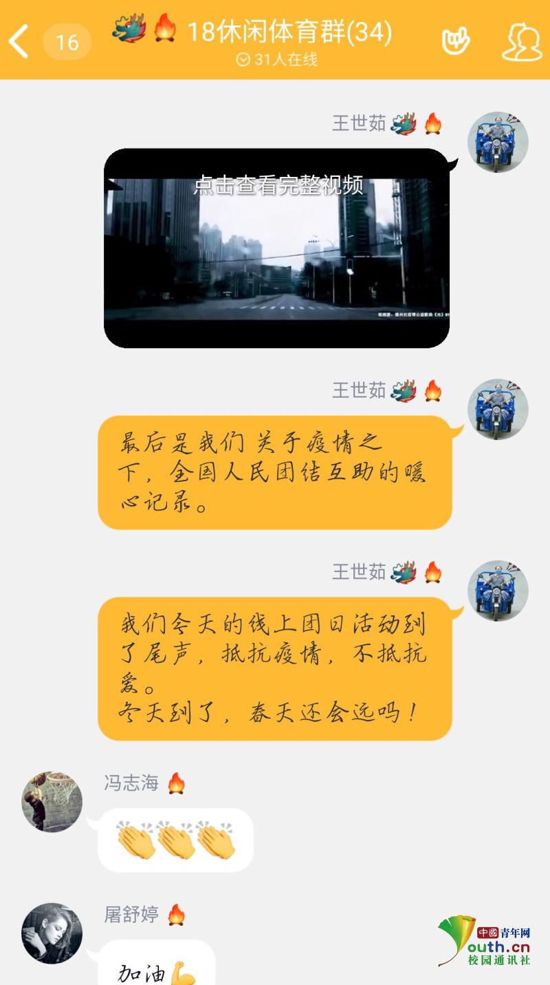 圖片同學(xué)們對武漢加油的聊天記錄中國青年網(wǎng)通迅員劉磊攝