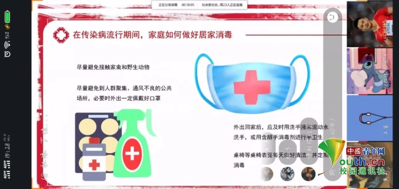 ?各團(tuán)支部在群中分享了相關(guān)線上學(xué)習(xí)材料,其中1822114031團(tuán)支部的衛(wèi)生委員屠書婷拍攝了正確佩戴口罩的視頻、1822114021團(tuán)支部使用屏幕共享通過ppt正面宣傳疫情防控,傳播科學(xué)防控知識。各團(tuán)支部都再次強(qiáng)調(diào)了健康打卡的重要性,督促同學(xué)們了解本次疫情相關(guān)知識,使其安全、有序地參與防控工作。