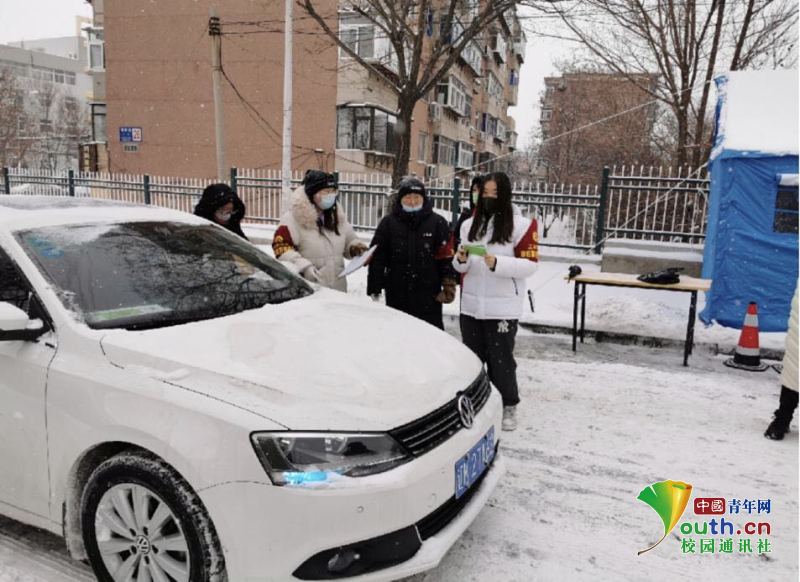 18級學生丁沁琳,積極參與社區志愿者工作中,在社區辦公室里,她按照要求查看、確認并蓋章每家每戶的出入通行證與負責人聯系信息卡;在負責的社區里,她隨同社區相關區域的工作人員一起上門為居民登記返鄉時間等詳細信息;在社區設置的卡口處,她與其余團員、黨員志愿者一同在雨雪寒風中值班,認真檢查出入卡口人員的通行信息證明;在社區工作人員忙碌時,她與其余志愿者一同幫忙錄入登記工作證明的聯系信息……