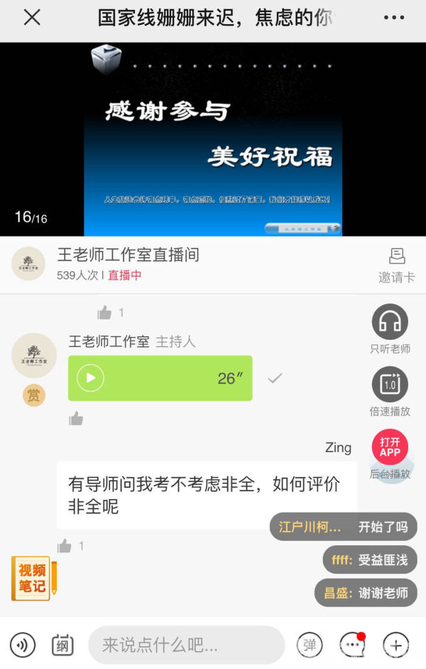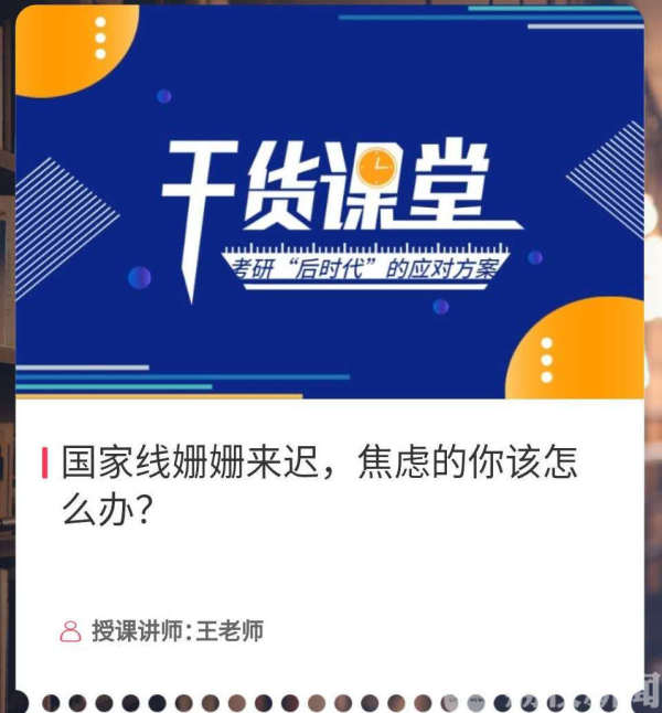 直播課以“考研‘后時(shí)代’的應(yīng)對(duì)策略”為主題,借助ppt和語(yǔ)音直播,幫助考研學(xué)子分析了2020年的考研形勢(shì),引導(dǎo)他們客觀評(píng)估自己的初試成績(jī),指導(dǎo)他們積極做好復(fù)試、調(diào)劑等方面的相關(guān)準(zhǔn)備。