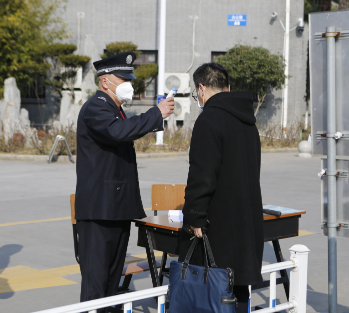 “守好門,看好人。”防疫期間,保衛處采取“單門雙人雙崗”,對進入校園的人員和車輛進行身份查驗和體溫檢測。建立“教工無有效證件不得進校、合作單位人員無引領不得進校、入校人員體溫測量需合格”防控機制,“不漏一車、不漏一人”,把好“排查關”,不放過一個可疑點。