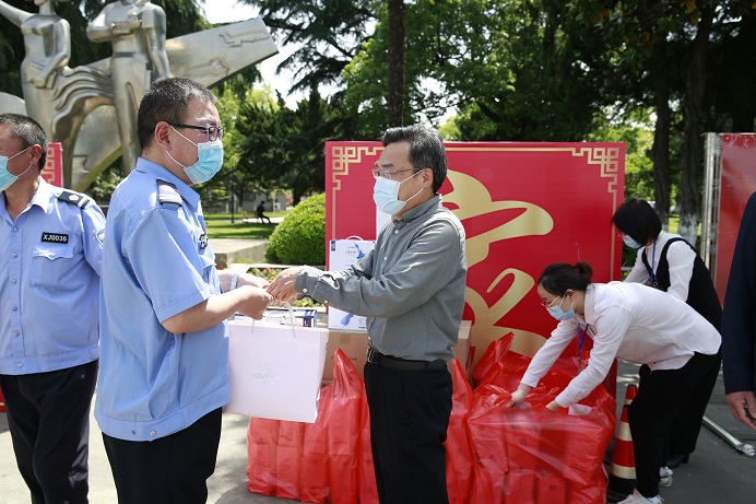 5月13日上午,校黨委副書記、副校長、工會主席景旭文代表學校走訪慰問奮戰在疫情防控一線的工作人員。