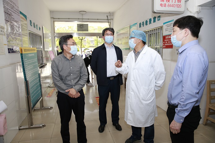 景旭文副書記先后看望并慰問了校衛隊職工、校醫院的醫護人員。在校衛隊,他向工作人員詳細了解了門崗進出排查登記、測量體溫等情況;在校醫院,看望了日夜堅守的醫護人員,了解隔離觀察點的運行機制、學生返校后的安排、學生發熱等突發情況的處理等事宜。景旭文副書記代表學校感謝大家在疫情防控工作中的辛勤付出,并叮囑他們在落實各項防控措施的同時,加強自身防護。