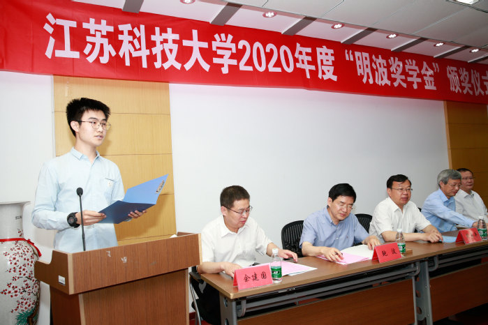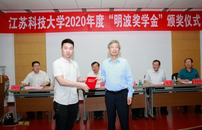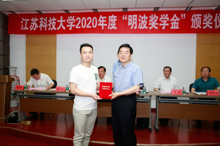 周南平校長向“明波獎學金”發起校友頒發《捐贈證書》;學生處處長蔣春雷宣讀《關于表彰2020年“明波獎學金”獲獎者的決定》;兩位嘉賓校友為獲獎學生代表頒發證書。獲獎學生代表張一馳表示,在未來工作崗位上一定會用過硬的專業知識和技能,為母校增光添彩,實現自己的造船夢。