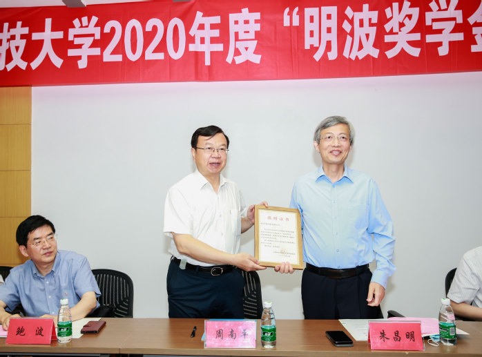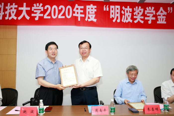 5月25日上午,學校在東校區舉行2020年“明波獎學金”頒獎儀式,獎學金設立人、我校1983屆杰出校友朱昌明和鮑波親臨頒獎現場,校長周南平、副校長湯建出席頒獎儀式,頒獎儀式由對外合作處處長佘建國主持。