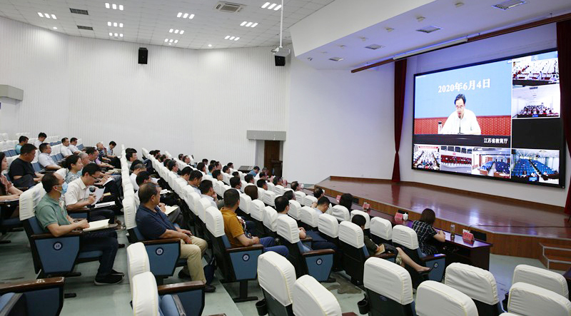 6月4日下午,省委教育工委組織召開全省教育系統全面從嚴治黨工作視頻會議。省教育廳廳長、黨組書記、省委教育工委書記葛道凱出席會議并發表講話,省紀委監委駐省教育廳紀檢監察組組長張姬雯對省教育系統紀檢監察工作提出要求,省教育廳機關黨委書記汪國培在主會場主持會議。我校在鎮江校區演講廳設立分會場,在校全體校領導、黨委委員、紀委委員、二級黨組織書記、職能部門負責人及全體專職紀檢監察干部參加會議。