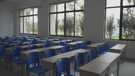 在13號教學樓,教室內的桌椅都已經到位并擺放整齊,多媒體系統等還在安裝之中。