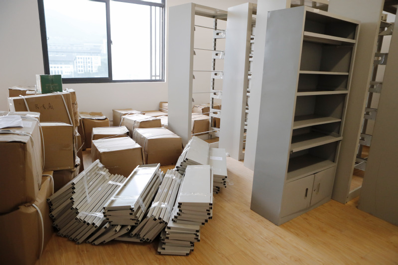 在新校區,土建學院的5樓主要是團隊為主分配用房,沒有教授工作室,潘志宏說,“學院基本還是按功能來布局,希望能最大化利用有限的辦公用房。”在現場,建筑系已經搬遷到位,教職工正在整理物品,學院的圖書資料室、閱覽室的書架都已擺放到位,接下來就是書籍上架等后續瑣碎的整理工作。