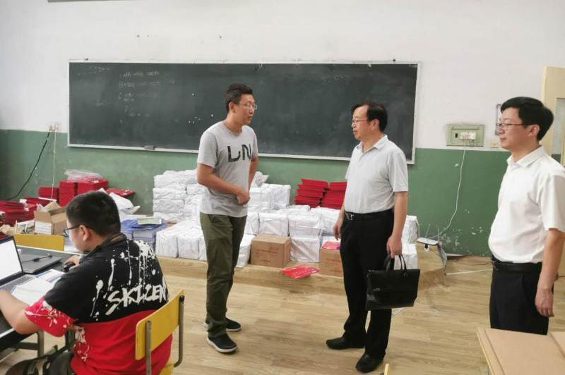 周校長首先詢問了我校2020年招生錄取工作進展情況,然后認真查看了招生錄取、通知書制作、封裝郵寄等各個環(huán)節(jié)。周校長首先充分肯定了今年學(xué)校招生錄取工作,表示今年受疫情影響,招生錄取時間要持續(xù)到8月底,又恰逢學(xué)校新校區(qū)搬遷,招生工作程序復(fù)雜、時效性強、任務(wù)量大,事關(guān)考生的切身利益,招生工作人員務(wù)必要保持工作熱情,細致認真,確保我校今年招生錄取工作順利完成。