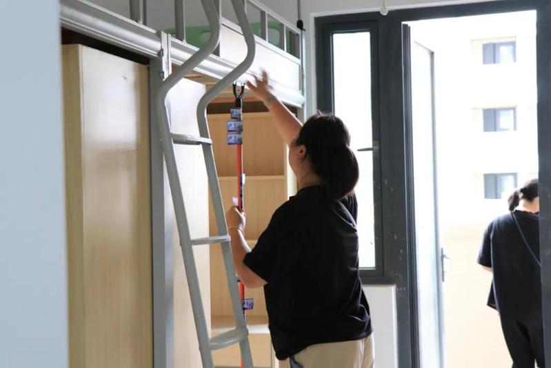 后勤人一直把服務好師生作為頭等大事,千方百計為教職工辦實事、辦好事、謀福利。在炎熱的高溫下,為了開學廣大師生能順利入住,后勤人一刻都不敢浪費,保時間、保節點、保進度、保質量、保服務,這些詞是他們口中的高頻詞匯。在這個沒有空調感覺呼吸都不順暢的高溫天,他們一身汗水、滿面灰塵,在爐灶旁洗切揮鏟、在現場中往返施工,烈日驕陽埋首苦干,風里雨里接力堅持。