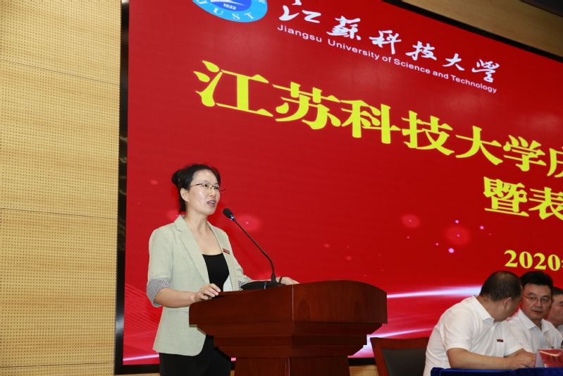 黨委副書記、副校長景旭文宣讀《關(guān)于表彰江蘇省五一勞動(dòng)獎(jiǎng)和江蘇省工人先鋒號的決定》《中共鎮(zhèn)江市委、鎮(zhèn)江市人民政府關(guān)于表彰鎮(zhèn)江市勞動(dòng)模范的決定》《第三屆江蘇省本科高校青年教師教學(xué)競賽暨第五屆全國本科高校青年教師教學(xué)競賽選拔賽結(jié)果通報(bào)》《關(guān)于表彰2019-2020學(xué)年優(yōu)秀教師、優(yōu)秀教育工作者和先進(jìn)集體的決定》;副校長姜朋明宣讀《關(guān)于表彰2019-2020學(xué)年優(yōu)秀輔導(dǎo)員、優(yōu)秀學(xué)業(yè)導(dǎo)師和優(yōu)秀班主任的決定》。Oleg(挪威)被授予江蘇省五一勞動(dòng)榮譽(yù)獎(jiǎng)?wù)拢顬I城被授予鎮(zhèn)江市勞動(dòng)模范稱號,聞燕和周瑜分別榮獲第三屆江蘇省本科高校青年教師教學(xué)競賽暨第五屆全國本科高校青年教師教學(xué)競賽理科組二等獎(jiǎng)和工科組二等獎(jiǎng)。王治均等32人被授予“優(yōu)秀教師”稱號、卜江春等19人被授予“優(yōu)秀教育工作者”稱號、船舶與海洋工程學(xué)院船舶設(shè)計(jì)教研室等10個(gè)單位被授予“先進(jìn)集體”稱號。夏志平等18名同志被授予“優(yōu)秀輔導(dǎo)員”稱號,牛建杰等62名同志被授予“優(yōu)秀學(xué)業(yè)導(dǎo)師”稱號,鄭艷芳等8名同志被授予“優(yōu)秀班主任”稱號。