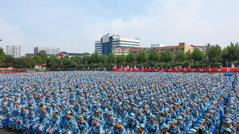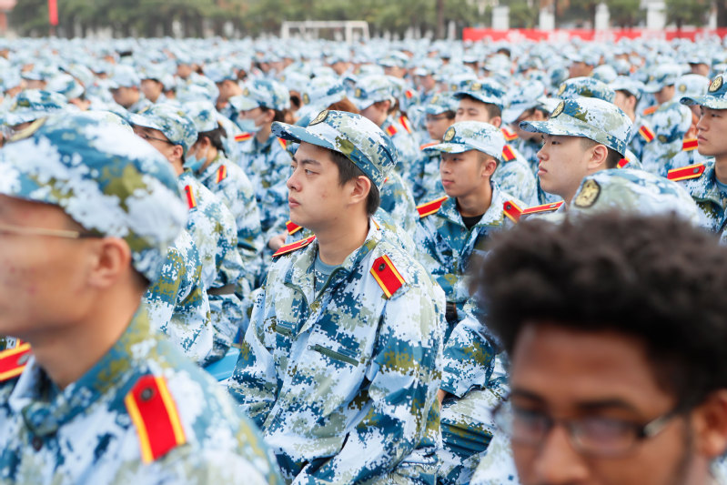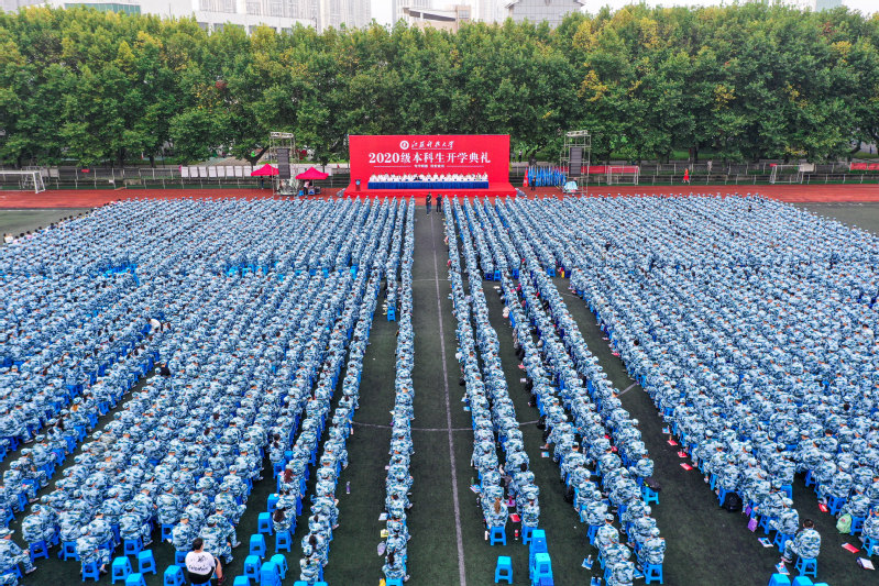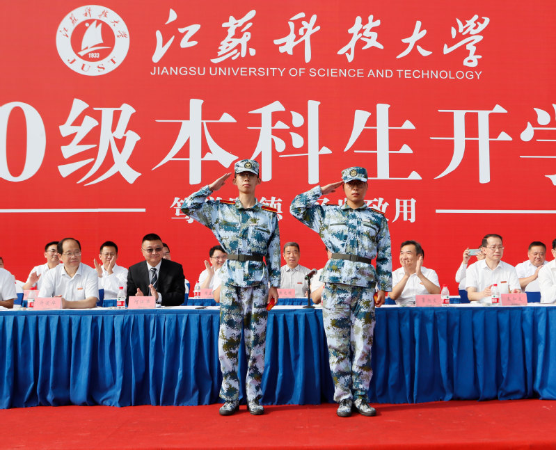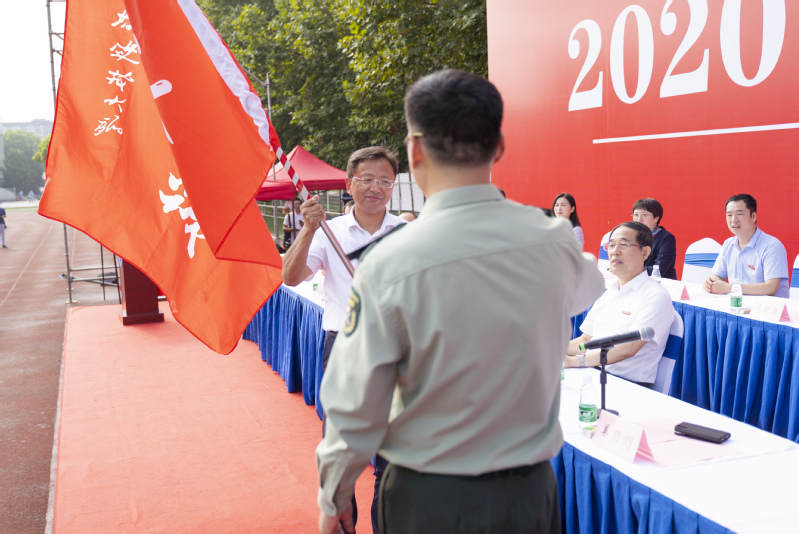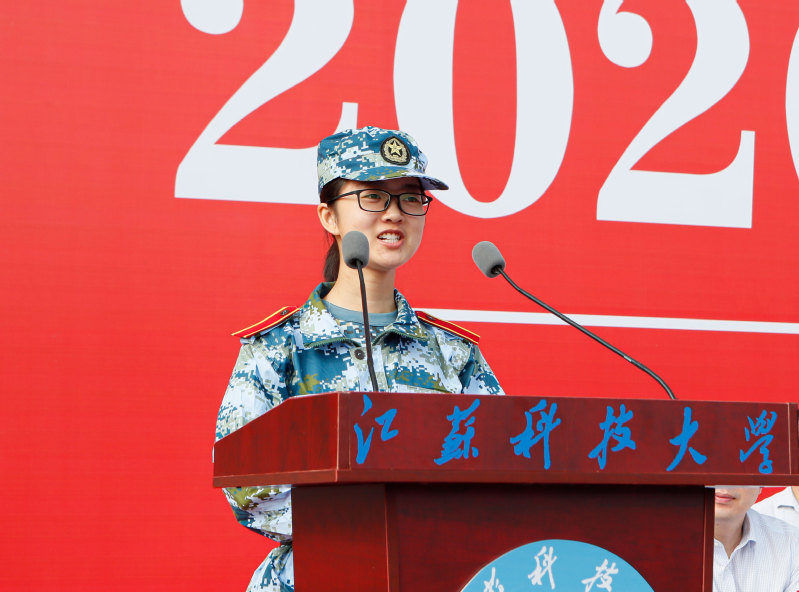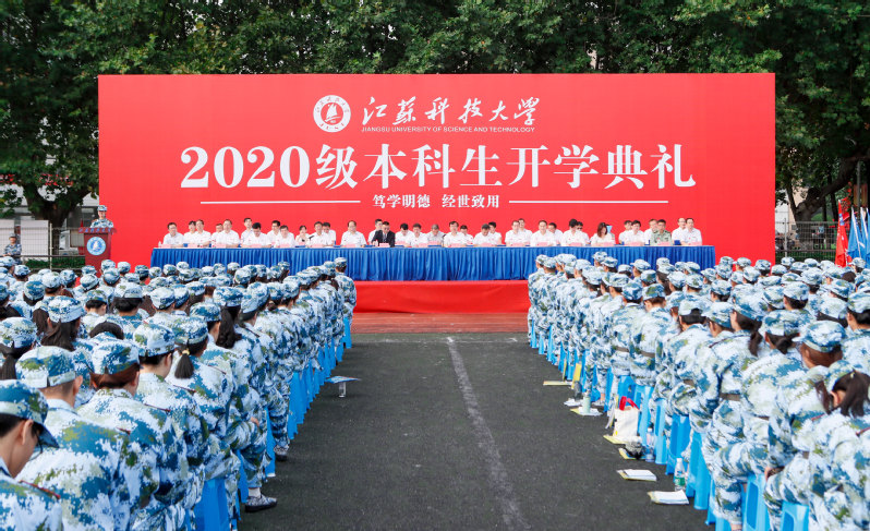隨后,學校舉行2020級新生軍訓動員大會,宣布《2020年江蘇科技大學軍訓旅編成》,副校長姜朋明作軍訓動員并授軍訓旗,軍訓學員代表、計算機類新生李琦發言。2020級新生分15個營67個連,從16日起至30日開展為期15天的軍訓。