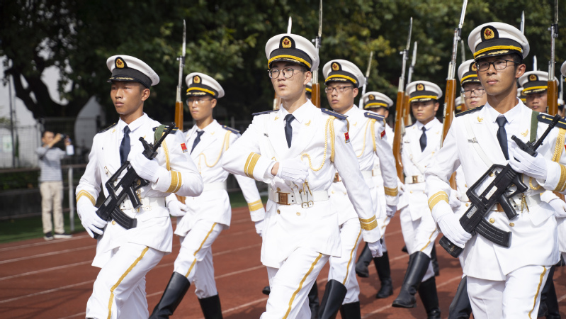 伴隨著五星紅旗冉冉升起,典禮在夢溪校區運動場莊嚴的國歌聲中開始,全體師生行注目禮。