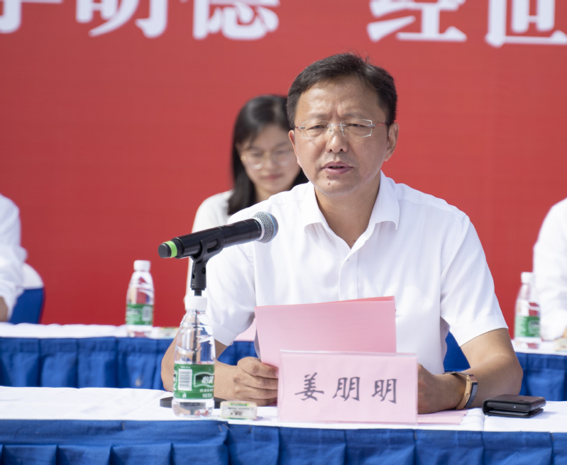 姜朋明副校長代表學校就為什么要軍訓和如何開展好軍訓兩方面為新生作了動員講話。他指出,2020年是不平凡的一年,全國人民經歷了新冠肺炎疫情的肆虐,目睹了抗洪搶險的驚險。危機面前人民軍隊沖鋒在前,這種精神與力量正是當代大學生所要學習的。軍訓是每個大學生履行兵役義務的一種基本形式,是高校學生的一門必修課,將“塑形”與“塑魂”相結合,融入愛黨、愛國、愛軍教育內容,訓家國情懷、訓戰斗精神、訓責任擔當。姜朋明要求同學們端正態度,嚴格訓練,尊重教官,聽從指揮,團結一致,互幫互助。同時,他要求各部門加強組織領導,進一步明確職責分工,既各司其職,又形成合力,高標準做好今年的軍訓工作。