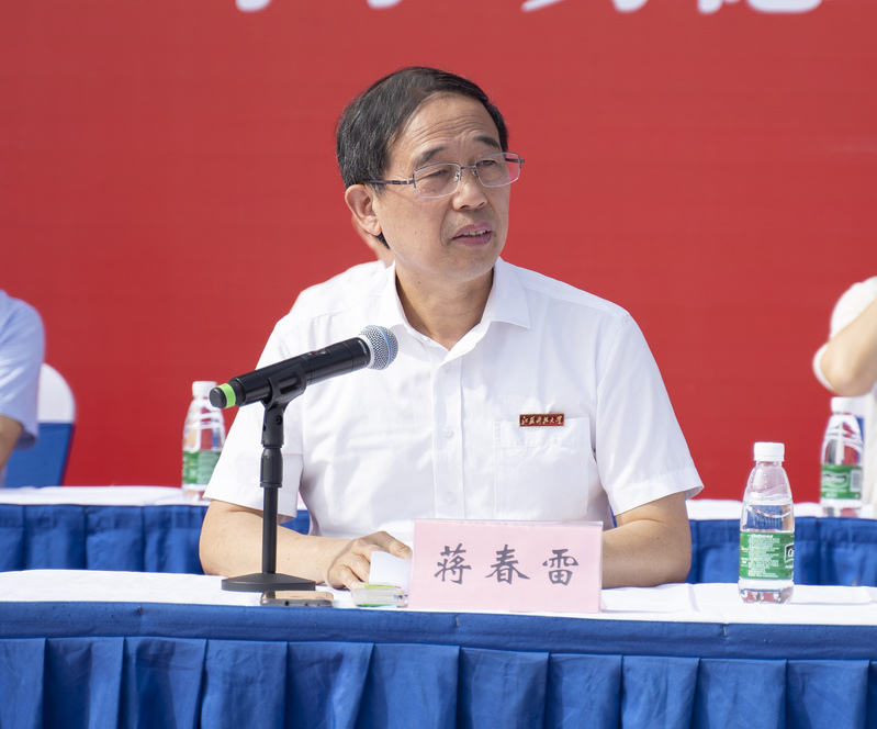 動員講話前,姜校長向軍訓旅旅長蔣宏志授軍訓旅旗,蔣宏志向各營授營旗。
