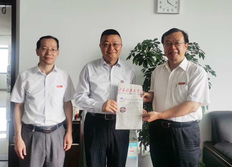 黨委書記葛世倫對何江華校友的到來表示熱烈歡迎,希望學校與滬東中華造船(集團)有限公司能夠進一步加強合作,實現(xiàn)合作共贏。校長周南平介紹了近年來學校學科建設、人才培養(yǎng)和科技創(chuàng)新等方面的情況,希望雙方繼續(xù)深化合作內(nèi)容,拓展合作領域,并為何江華校友佩戴精美的校友徽章,并贈送印有何江華校友先進事跡的第756期《江蘇科技大學報》。會談中何江華校友對近年來學校發(fā)展取得的成績表示祝賀,并簡要介紹滬東中華造船(集團)有限公司在軍工、民用兩大領域的實業(yè)和產(chǎn)業(yè)發(fā)展情況,祝福母校培養(yǎng)出越來越多的優(yōu)秀人才,繼續(xù)為中國船舶行業(yè)的發(fā)展和區(qū)域經(jīng)濟發(fā)展貢獻力量。雙方就科研合作、人才培養(yǎng)和未來研究方向等方面展開深入交流。