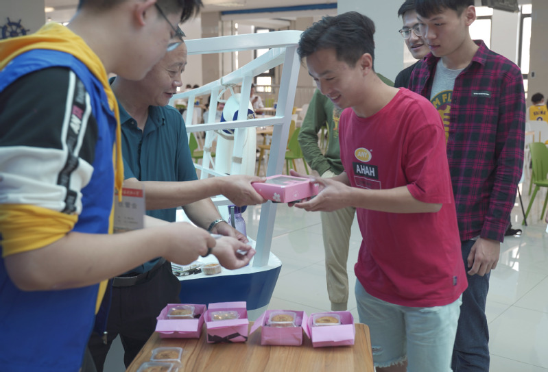 “遙寄相思與明月,遠(yuǎn)望秋水共長(zhǎng)山”,今天,江蘇科技大學(xué)還特意定制了印有學(xué)校?;盏脑嘛?,名叫“江海相思月”,帶著學(xué)校滿滿的愛意,送給學(xué)生。在長(zhǎng)山校區(qū)西苑風(fēng)味餐廳、東苑風(fēng)味餐廳,夢(mèng)溪校區(qū)東苑餐廳、園中苑餐廳,只要在窗口就餐就會(huì)領(lǐng)到月餅一枚。