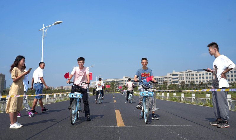 座談會(huì)后,學(xué)生處組織學(xué)生開展了“慢騎比賽”,賽道設(shè)置在海韻湖邊,沒(méi)有激烈的吶喊,沒(méi)有高聲的助威,參賽者在緩慢行駛過(guò)程中享受著陽(yáng)光的沐浴,湖風(fēng)的撫摸,感受著學(xué)校的溫暖。