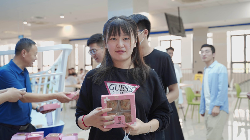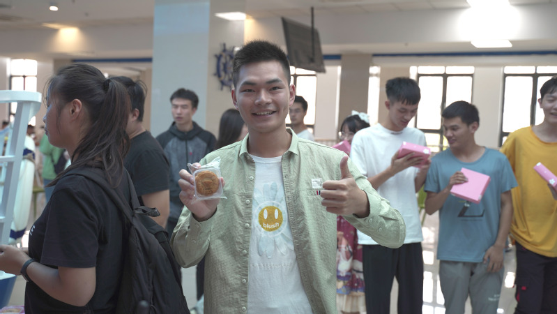 電子信息類新生襲雅潔、唐少敏領(lǐng)到學(xué)校特別定制的月餅,非常開心,她們覺得學(xué)校特別用心,領(lǐng)月餅的同時(shí)還不忘給工作人員送上節(jié)日的祝福,她們希望祖國(guó)生日快樂(lè),更加繁榮昌盛,也祝愿家人佳節(jié)身體健康,萬(wàn)事如意。經(jīng)管類新生高怡夢(mèng)收到月餅感到很特別也很開心,她希望佳節(jié)大家都能夢(mèng)想成真。食品類新生張伊欣、于本晴從公眾號(hào)上了解到學(xué)校送月餅的活動(dòng),覺得月餅比較精致,雖然沒(méi)有回家,但是已經(jīng)與家人視頻通話,今天會(huì)和室友一起賞月共同歡慶佳節(jié)。海洋工程類新生彭碩也覺得學(xué)校很用心,應(yīng)用物理類黃姍姍領(lǐng)到月餅后想保留下來(lái)做紀(jì)念,她覺得這是節(jié)日比較特別的禮物。