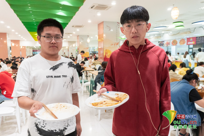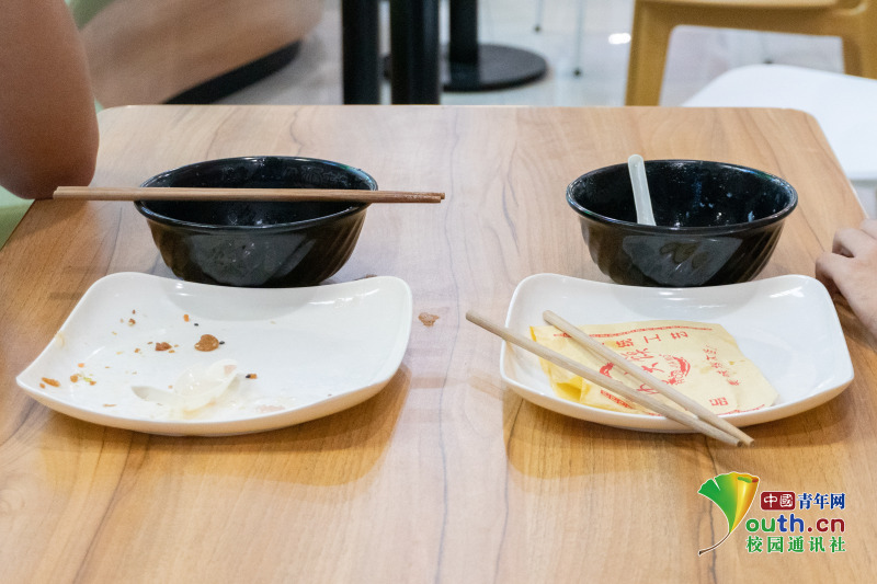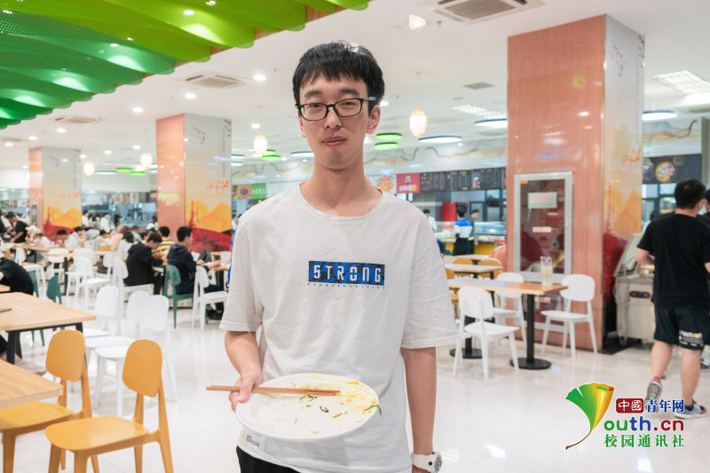 食堂就餐同學向記者展示自己的“光盤”。中國青年網通訊員 孔凡 攝