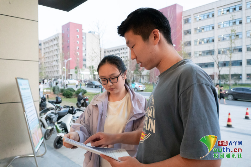 食堂外00后志愿者們向廣大師生發出倡議書 中國青年網通訊員 孔凡 攝