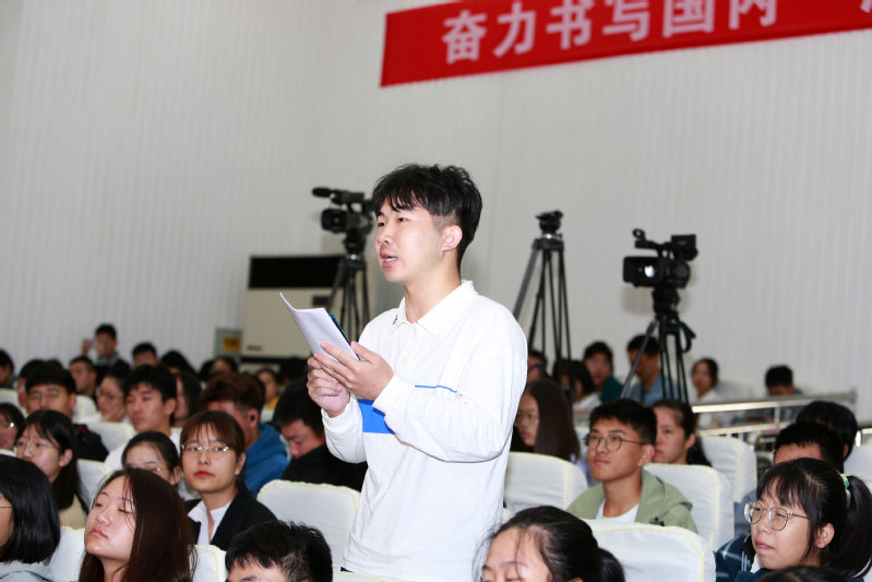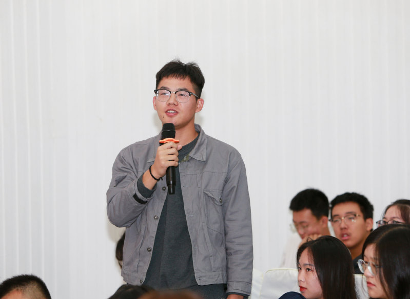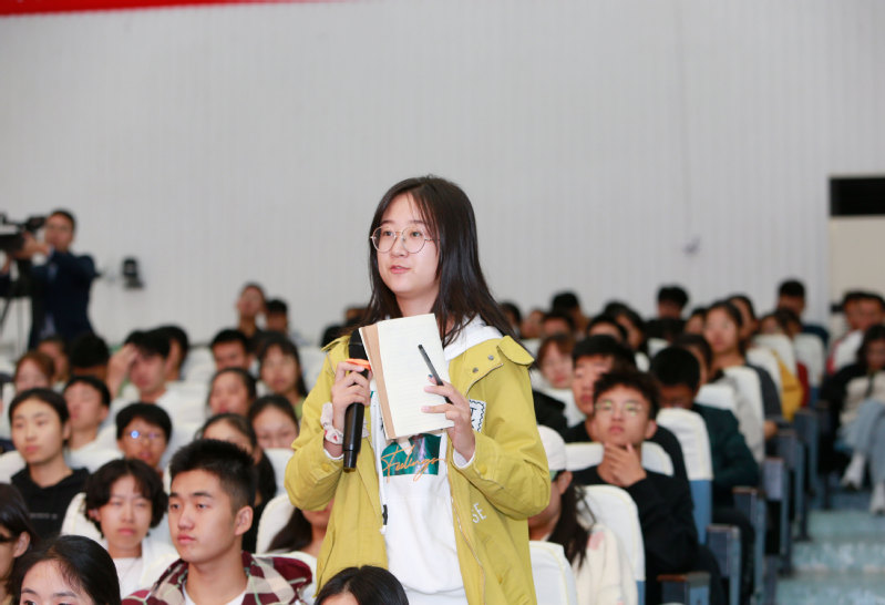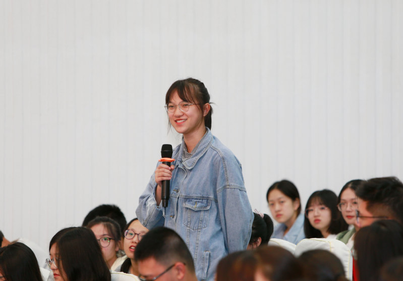 在互動環節,食品科學與工程類二班班長張璟琪同學、外國語言文學類宋菲同學、體育類龔鑫同學、深藍學院學生會負責人李琦同學等踴躍提問,圍繞進入大學后的學業規劃、專業發展等方面提出了富有見地的思考,葛書記用堅定溫和的語氣耐心地為同學們解疑釋惑、指點迷津,充分體現了葛書記作為學者與長者的深厚學術涵養和對江科大新學子的深切厚望。