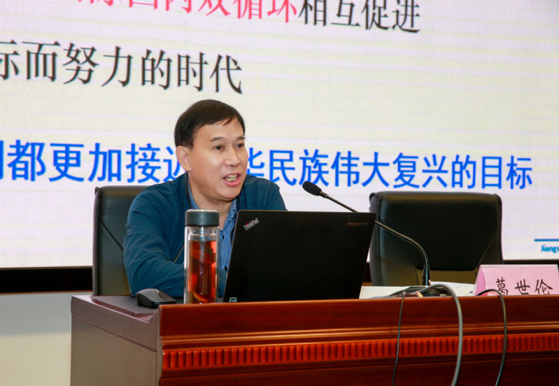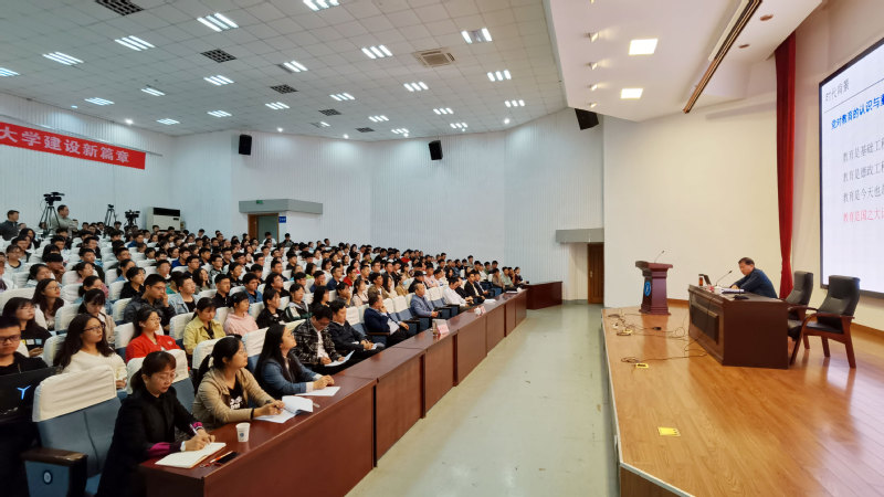 新時代中國大學的使命是立德樹人。葛書記從“立德樹人的內涵與傳承”談起,強調了黨的十八大以來習近平總書記對全國高?!傲⒌聵淙恕钡囊螅阂蚜⒌聵淙说某尚ё鳛闄z驗學校一切工作的根本標準。他引經據典地闡釋了“立德”在《左傳》與《管子》的歷史淵源,指出在當代“立德”就是育人,堅持德育為先,培養有理想信念、有家國情懷、有良好品行、有崇高思想的人;“樹人”就是育才,堅持以人為本,培養德智體美勞全面發展的人,就是要培養要扎實知識、有創新意識、創新能力、知行合一、身心健康的人?!傲⒌聵淙恕本褪怯擞畔嘟y一的過程。