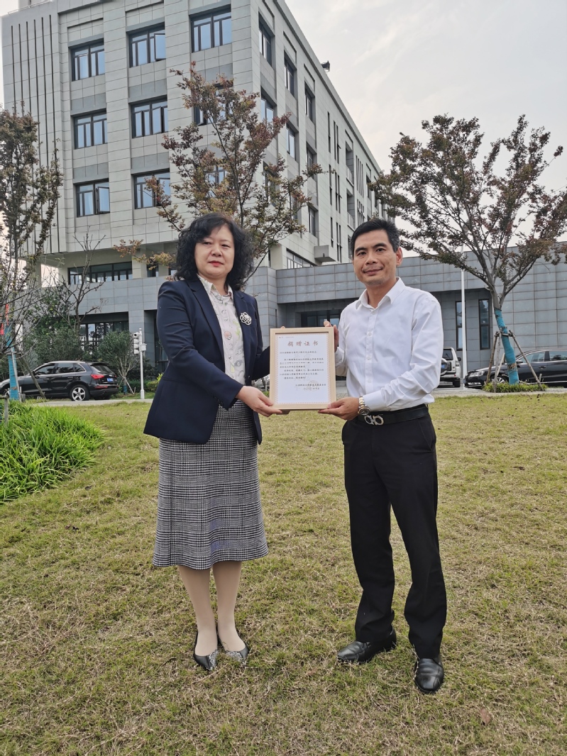 嵇春艷副校長向2004屆校友代表張發平頒發捐贈證書。她高興地說,“你們是我帶的第一屆學生,一晃20年過去,今天的相聚格外高興,意義非凡。”她向校友們介紹了船舶與海洋工程學科的發展情況,當前船舶與海洋工程學科排名位列全國第5位。全校師生凝心聚力為建設“國內一流造船大學”長遠戰略目標而奮斗,希望校友們集結各界力量,助力學校發展,并祝愿廣大校友事業進步、家庭幸福。