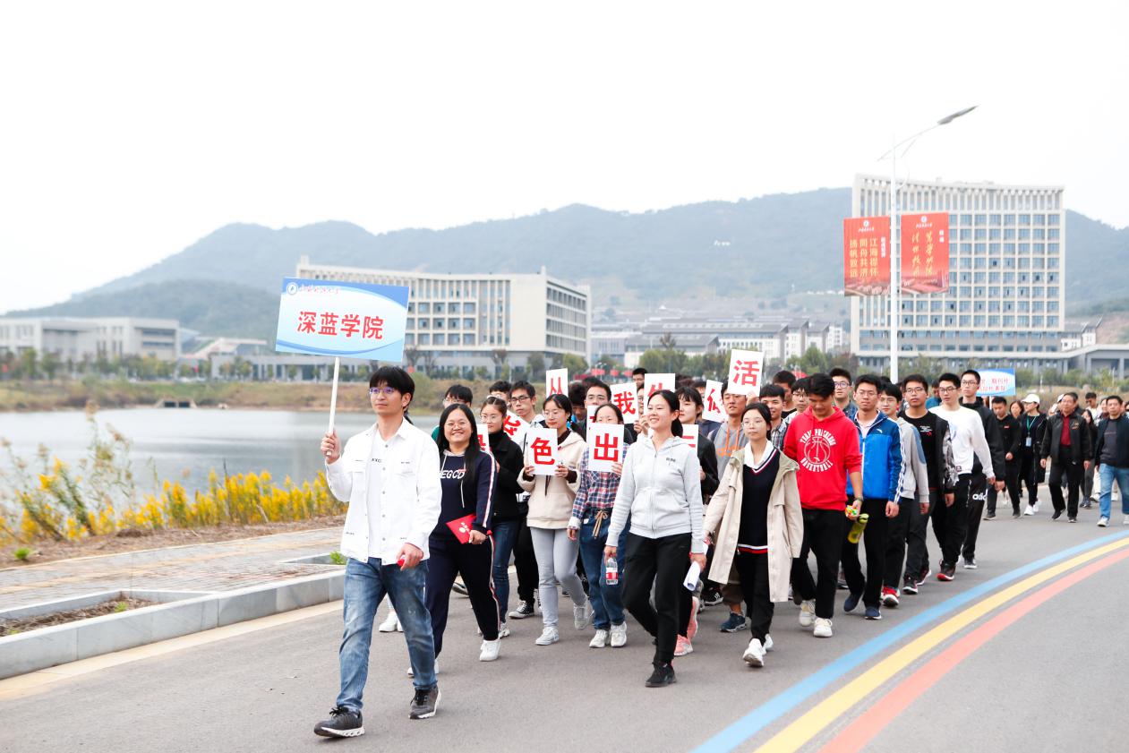 啟動儀式后,學校各黨政機關、教學科研單位、基層黨組織、師生代表組成的18個代表隊近1000名師生參加了環湖健步走活動,師生步伐矯健,精神蓬勃,在健步走運動中體味節能減排的美好風尚。