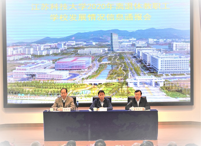 10月23日上午,江蘇科技大學在夢溪校區演講廳召開了離退休教職工信息通報會。校黨委書記葛世倫、校長周南平,校黨委副書記許俊華出席,全體離退休黨員,學校黨辦、校辦、組織部、人事處、工會等職能部門負責人以及離退處全體工作人員,共200余人參加了會議。校黨委副書記許俊華主持。