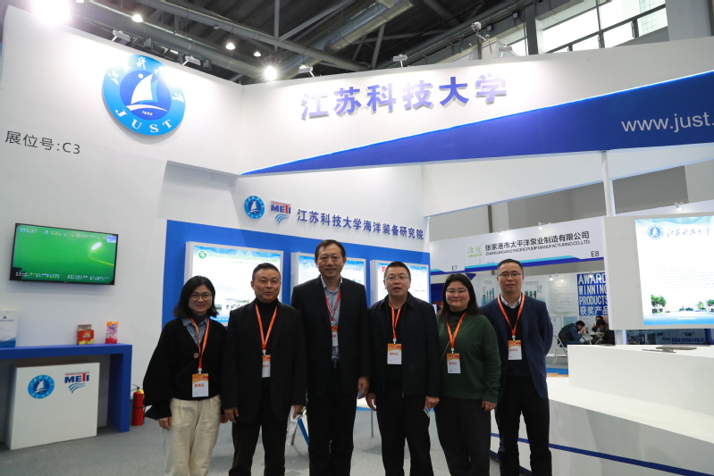 江蘇科技大學、江蘇省船舶工業行業協會、中國船舶與海洋工程產業知識產權聯盟、江科大海洋裝備研究院、江蘇現代造船技術有限公司等組團,近百平方米的展臺裝飾一新,以圖文并茂方式參展,展示了江科大人服務船舶與海洋的信念。中國船舶工業行業協會會長郭大成、南通市委書記徐惠民、工信部船舶處調研員陳穎濤、中國造船工程學會秘書長王俊利、中國船舶工業行業協會副秘書長譚乃芬,以及船舶設計大師胡可一、楊葆和等專家學者蒞臨江蘇科技大學展臺,先后聽取了江蘇科技大學副校長俞孟蕻教授和江蘇省船舶工業行業協會秘書長蔣志勇教授有關情況介紹,紛紛對江科大和江蘇船協獲得工信部先進制造業集群項目表示祝賀,并就打造海工裝備和高技術船舶產業鏈提出具體要求。學校有關部門領導和專家教授一同參觀了展覽。
