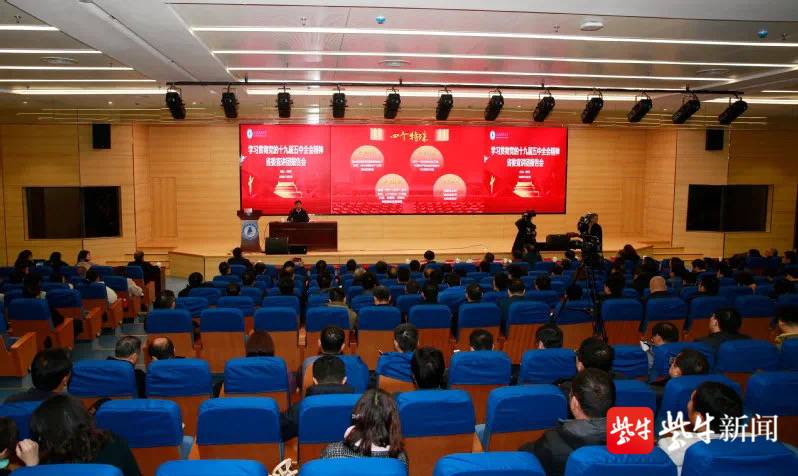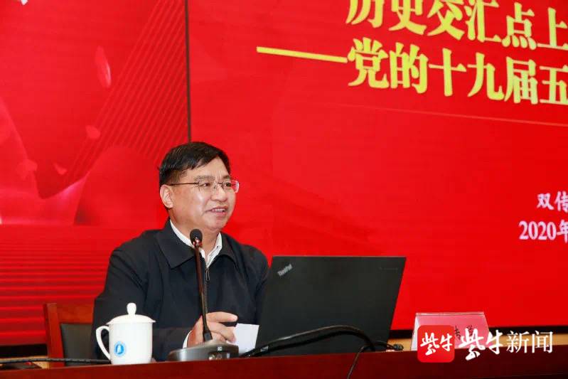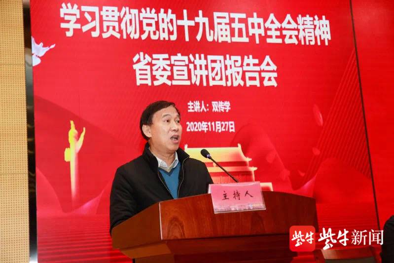 11月27日下午,學習貫徹黨的十九屆五中全會精神省委宣講團在江蘇科技大學進行宣講,省委宣講團成員、新華日報社黨委書記和社長、新華報業(yè)傳媒集團董事長、江蘇省哲學社會科學聯(lián)合會副主席雙傳學,到場作宣講報告。他以《歷史交匯點上的恢弘擘畫》為題,對全會精神進行了全面宣講和深入闡釋。