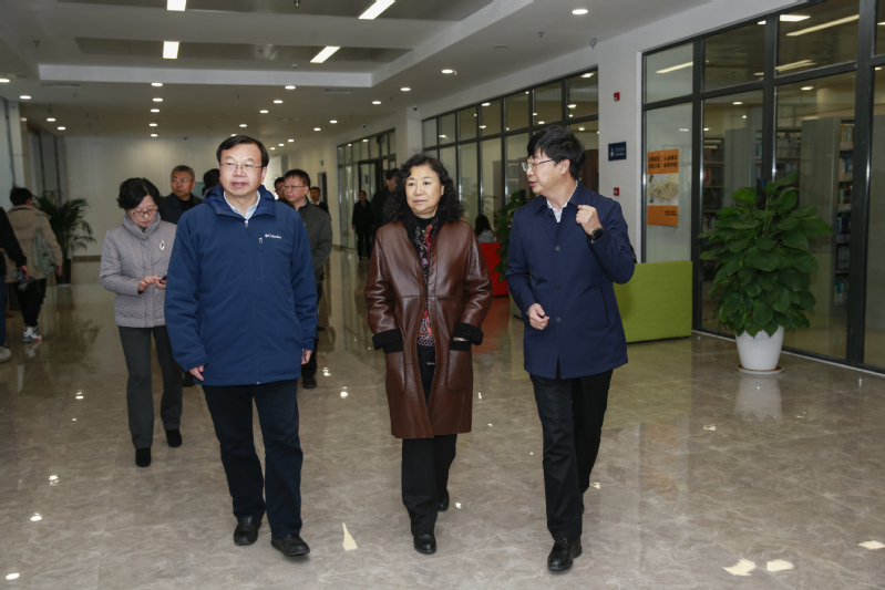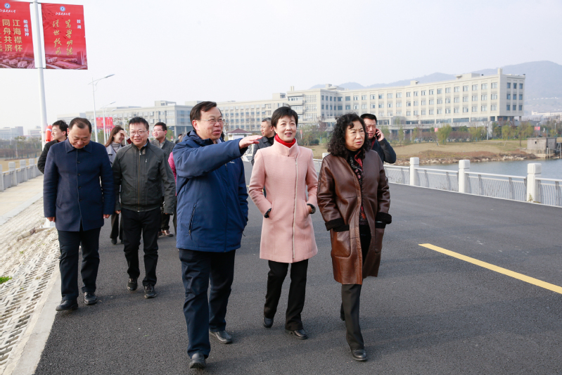 在江蘇科技大學長山校區(qū),調(diào)研組一行實地考察了校園環(huán)境,聽取發(fā)展規(guī)劃和校園建設現(xiàn)場匯報;先后走進圖書館和文理大樓,查看了解教育教學信息化建設情況,高度評價學校山水校園、現(xiàn)代化校園建設成果。