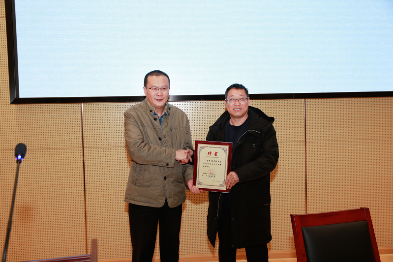 副校長湯建出席報(bào)告會(huì),在現(xiàn)場(chǎng)舉行的兼職教授聘任儀式上,為楊開剛頒發(fā)兼職教授聘書。校黨委常委、宣傳部長周春燕主持報(bào)告會(huì)。