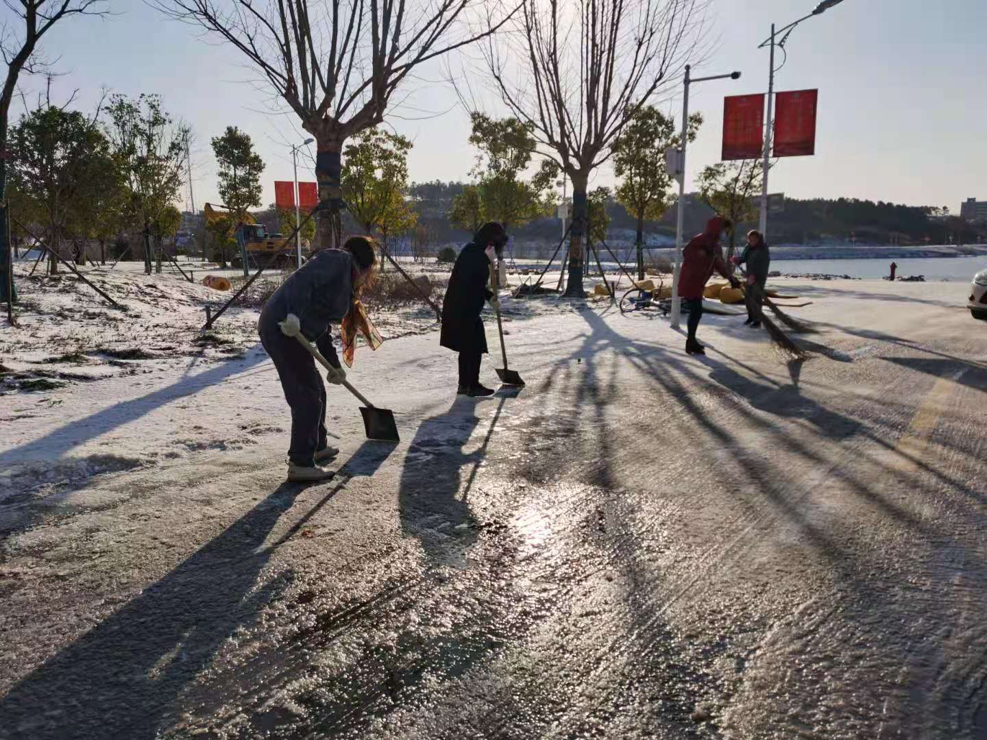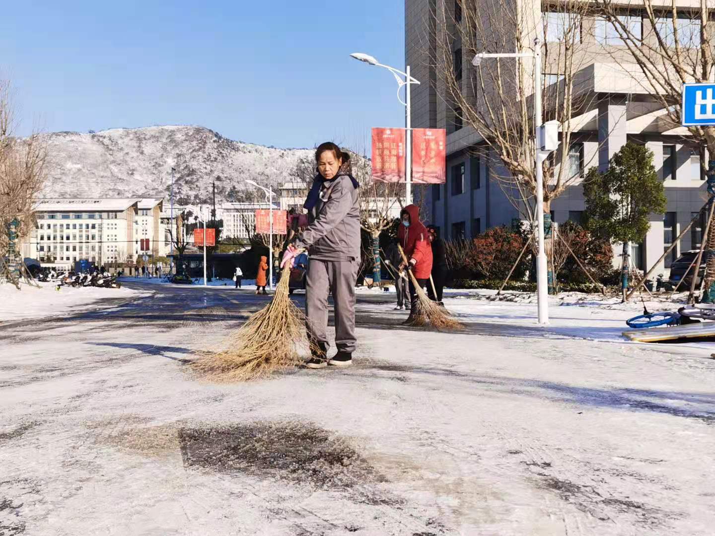 12月30日凌晨6:00,一陣陣掃帚劃過地面的聲音伴隨著鐵鏟摩擦聲打破了校園的寧靜。受強冷空氣影響,寒潮突襲鎮江,紛飛的大雪、刺骨的寒風相約而至,美麗的長山校區白雪皚皚、銀裝素裹。美麗的雪景令人神往,但卻給廣大師生出行帶來了很大的安全隱患,為了保障校園安全穩定運行,后勤集團工作人員大清早趕到學校清理積雪,為師生打通了安全上課、安心上班的交通線。