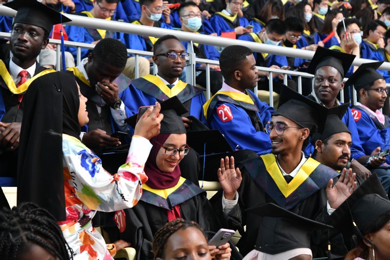 一日科大人,一生科大情。船海學院陳子和同學代表2021屆研究生畢業同學發表感言;來自馬達加斯加的海外教育學院陳祺同學,代表全體外國碩士留學生作畢業發言;計算機學院陳群同學作為2021屆本科生代表闡述心聲。他們回首逐夢科大的旅程,感恩母校的培育和關愛,表達了對未來的無限展望——“將永遠保持憧憬,守護赤子之心,駕馭時間之馬,創造出屬于我們這一代人的奇跡。”