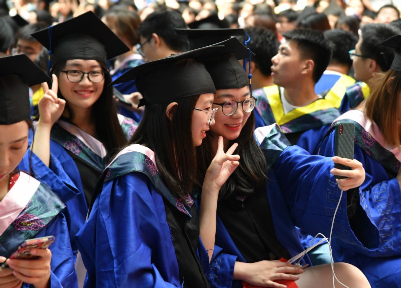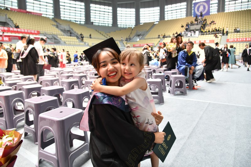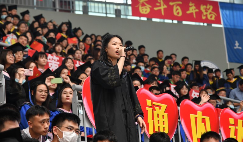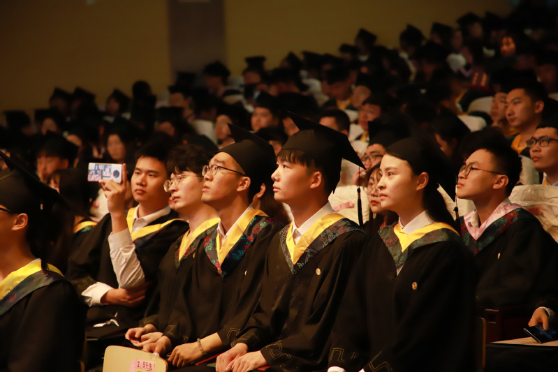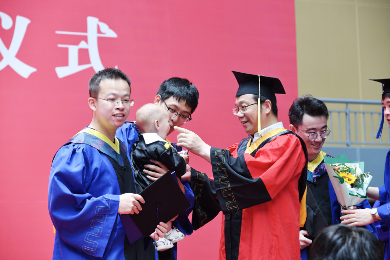“外國語學院的吳佳虹同學,你剪掉一頭長發捐給癌癥女童,相信即使是短發,你也一定是人群中最美的女生。”周南平如數家珍,回顧了部分畢業生精彩動人的小故事,給論文影響因子高達16.836的環化學院研究生李俊毅同學點贊,為本屆畢業生中圖書借閱量排名第一的理學院郁登宇同學叫好,向本科期間保持專業第一的機械工程學院留學生CELINE(賽琳)表示祝賀,對一邊備戰考研一邊定點拍攝學校建設情況的機械工程學院官震同學表達致謝……