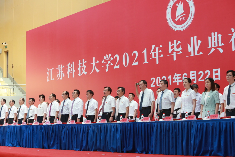 校黨委書記葛世倫,校長周南平,中國兵器工業集團有限公司總會計師、黨組成員張華,校領導景旭文、許俊華、鄭培鋼、談鎮、嵇春艷、任南,校黨委常委李恒川、周春燕、劉新波,江蘇科技大學學位委員會成員、畢業班全體輔導員和班主任,導師和教職工代表,以及特邀嘉賓——家長代表、校友代表、用人單位代表,熱情相聚為2021屆畢業生盛裝送行。校黨委常委、副校長俞孟蕻在張家港校區分會場出席典禮。