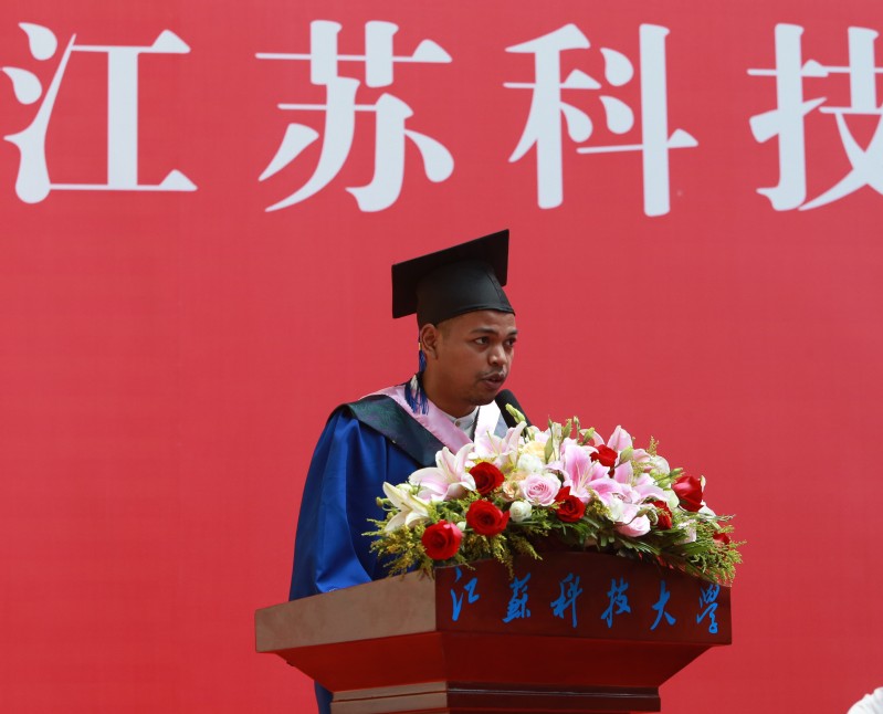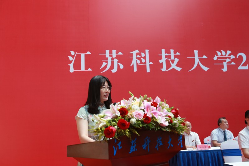 南京師范大學數學科學學院教師浦志勤代表全體畢業生家長,祝愿各位畢業生“勿忘初心,永遠奮斗”;祝愿江蘇科技大學桃李芬芳,蒸蒸日上,廣育英才。