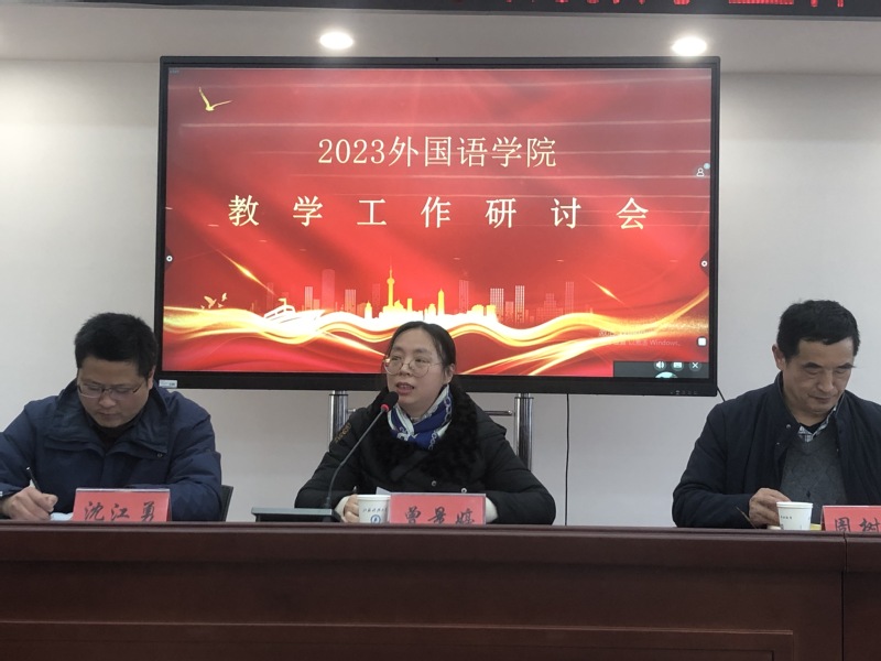 為進(jìn)一步深化本科教育教學(xué)改革,抓好重點工作落實,切實推進(jìn)學(xué)院教學(xué)工作,全面提升教學(xué)質(zhì)量和育人水平,2月15日,外國語學(xué)院采用線上線下相結(jié)合的方式,在長山校區(qū)外國語學(xué)院學(xué)術(shù)報告廳舉辦了2023年教學(xué)工作研討會。大會邀請教務(wù)處處長田劍、副處長沈江勇、南京林業(yè)大學(xué)肖飛教授,外國語學(xué)院領(lǐng)導(dǎo)班子和全體教職工參加會議,會議由副院長周樹軍主持。