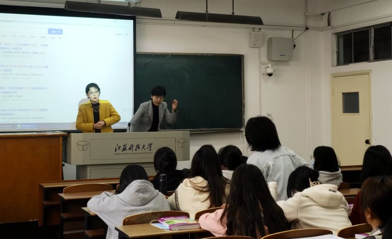在活動中,外國語學院副院長韓菁菁、新進博士王歡老師將中華優秀傳統文化融入語言教育,持續致力于培養學生用外語闡釋中國的語言能力與文化素養。在民俗文化進課堂活動中將第一和第二課堂有機結合,實現思政元素與語言學習的融會貫通。學生通過了解鎮江民俗文化感悟中華文化的博大精深,通過語言學習與文化浸潤增強民族責任感、自豪感和使命感,樹立文化自信。