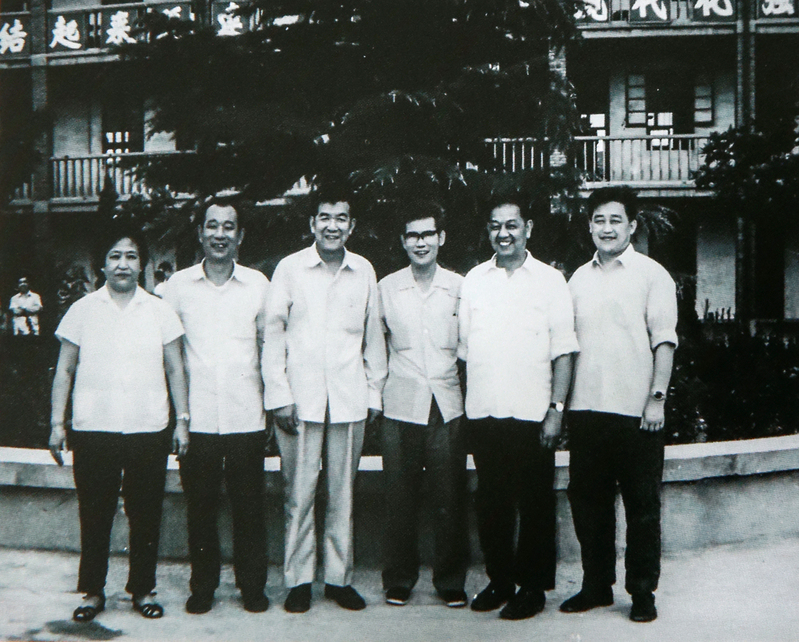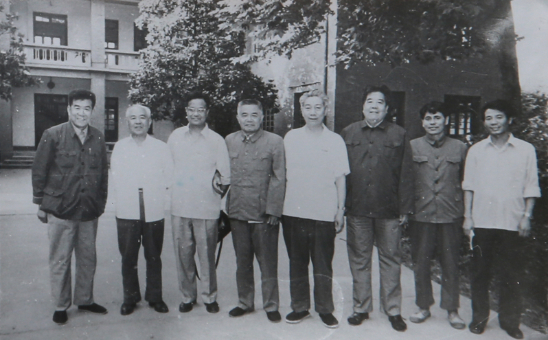 1982年6月,中船總公司領導和學院領導合影(左一劉東明、左三楊槱、左五肖流)