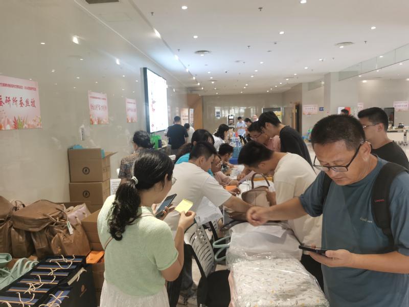 活動吸引了來自我校蠶研所、文創(chuàng)店、句容農業(yè)生態(tài)園、丹陽眼鏡廠家及各知名品牌汽車、各大銀行、ETC通行寶等20余家單位現場參與,提供了豐富多樣的文化用品、農產品、生活用品以及生活服務,并給出了專屬本次活動的大幅度優(yōu)惠力度,令來到現場的教職工欣喜不已,紛紛下單選購。其中學校的各類自研產品尤為受到大家的青睞,顯示出我校品牌的實力和影響力。