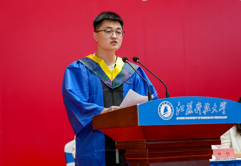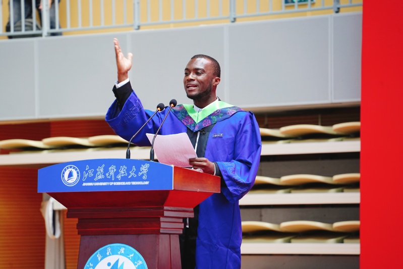 儀式見證成長,感言彰顯擔當。本科生代表、人文社科學院劉祎昕同學表示要勇敢在人生的航道上乘風破浪;留學生代表、來自科特迪瓦的喬納森同學用標準的普通話深情感謝母校培養(yǎng);碩士生代表、能源與動力學院沈鈺同學分享了踐行興船報國理想的無限展望。