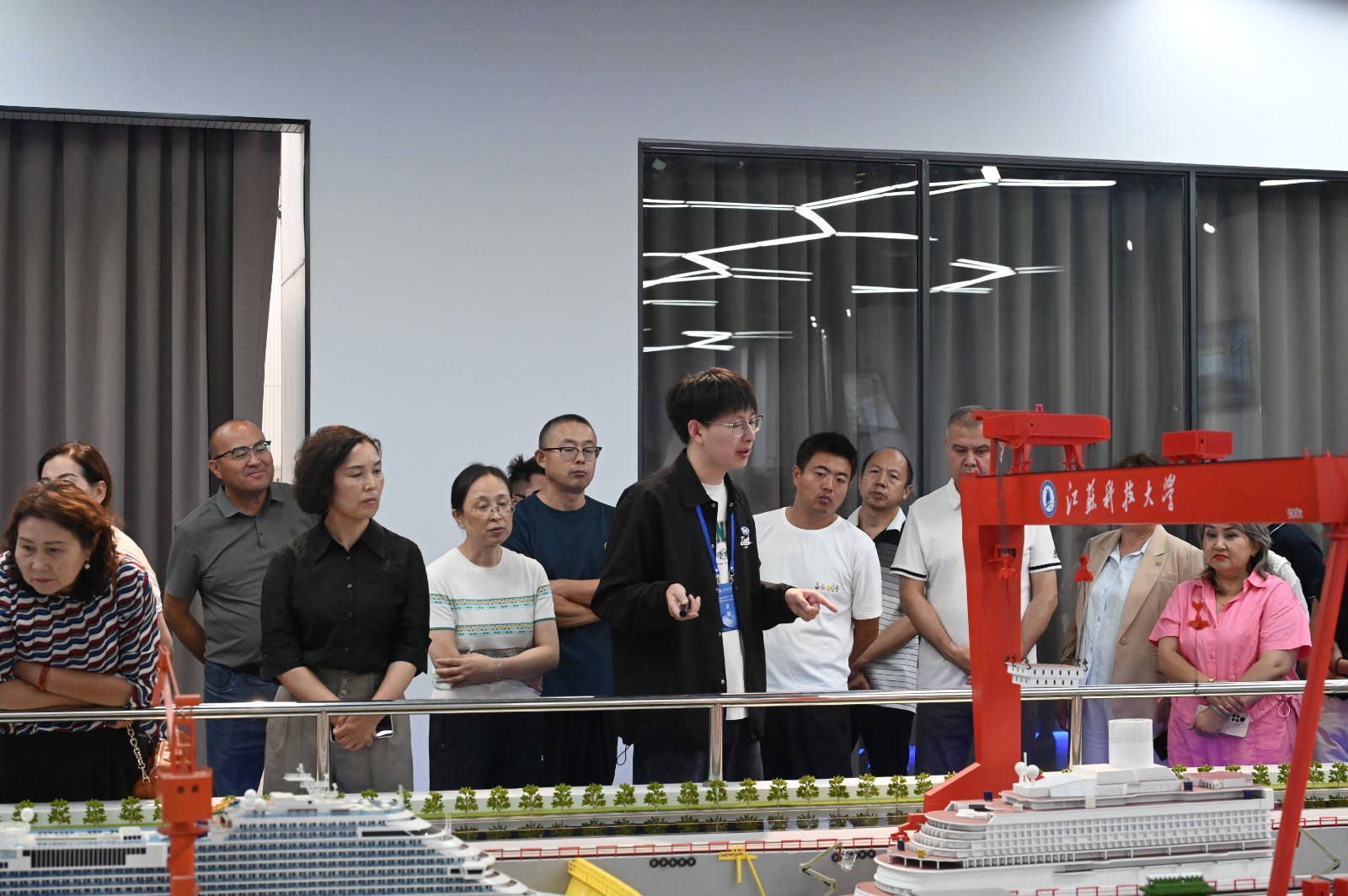 在船舶文化館,學員們參觀了古代船舶、民用船舶、海洋工程、軍用艦船、大國重器等五個展區,講解員結合一件件展品,生動講述了江科大人踐行投身船舶工業、服務地方經濟發展、服務海洋強國建設的故事;在船舶制造仿真實驗室,學員們了解了智能制造發展現狀,領略了智慧船廠解決方案。